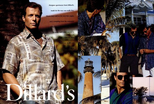 FULL CREDITSBrand: Dillard'sSeason: Spring/Summer 1991Model(s): Rick Edwards, Bill Curry, Jack KrenekPh: