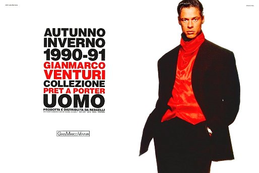 FULL CREDITSBrand: Gian Marco VenturiSeason: Fall/Winter 1990Model(s): Ranimiro LotufoPh: Walter Chin