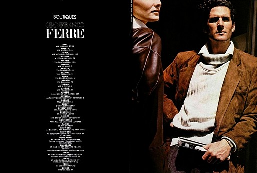 FULL CREDITSBrand: Gianfranco FerreSeason: Fall/Winter 1984Model(s): Robert Russell, Andie MacDowellPh: Herb Ritts
