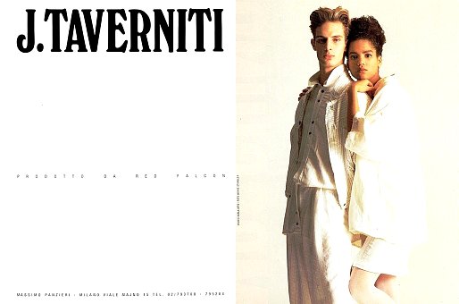 FULL CREDITSBrand: J.TavernitiSeason: Spring/Summer 1986Model(s): Ben Shaul and Veronica WebbPh: Wayne StamblerStudio Karla Otto