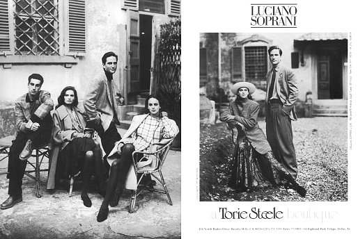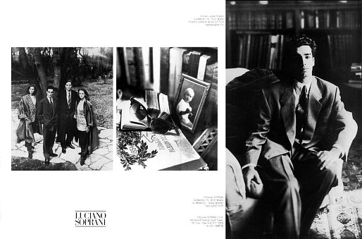 FULL CREDITSBrand: Luciano SopraniSeason: Fall/Winter 1987Model(s): Maasova, Laetitia Firmin-Didot and unidentifiedPh: Nadir NaldiArt Direction: Art Work Alas