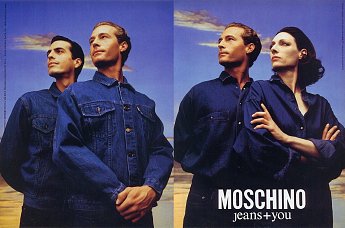 FULL CREDITSBrand: Moschino JeansSeason: Spring/Summer 1987Model(s): Tom Farrell, Juarez Malavazzi and Sara KappPh: William GarrettGraphic Design: Ivan Marinoni