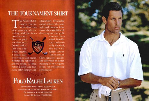 FULL CREDITSBrand: Ralph Lauren The Tournamnet ShirtSeason: Spring/Summer 1991Model(s): Jeff AquilonPh: Bruce Weber