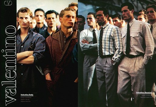 FULL CREDITSBrand: Valentino Chemises and BodySeason: Fall/Winter 1985Model(s): Jesse Harris, Jeff Moore, Vern Hazard, Sean Bolger and othersPh: Fabrizio Ferri