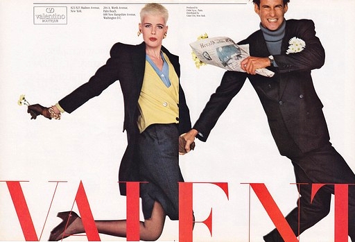 FULL CREDITSBrand: ValentinoSeason: Spring/Summer 1986Model(s): Ricardo Ramos, Jeny Howorth and others.Ph: Oliviero Toscani